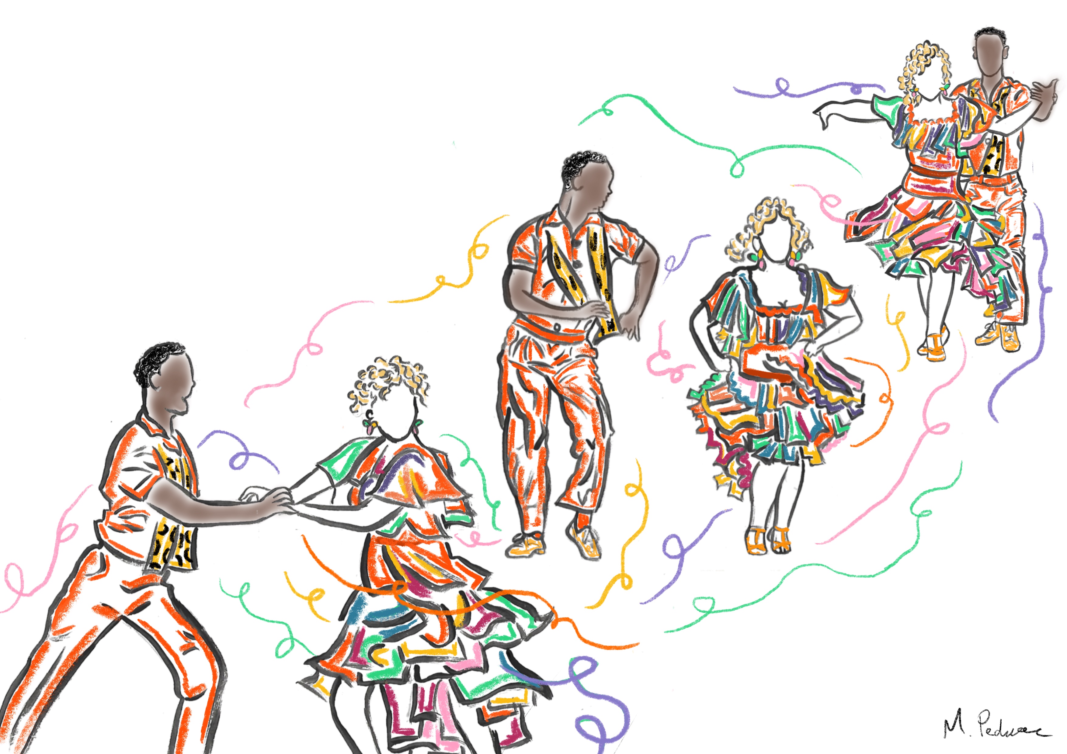These were hand-painted using thick brushstrokes to enhance the way the body moves within each different dance style.